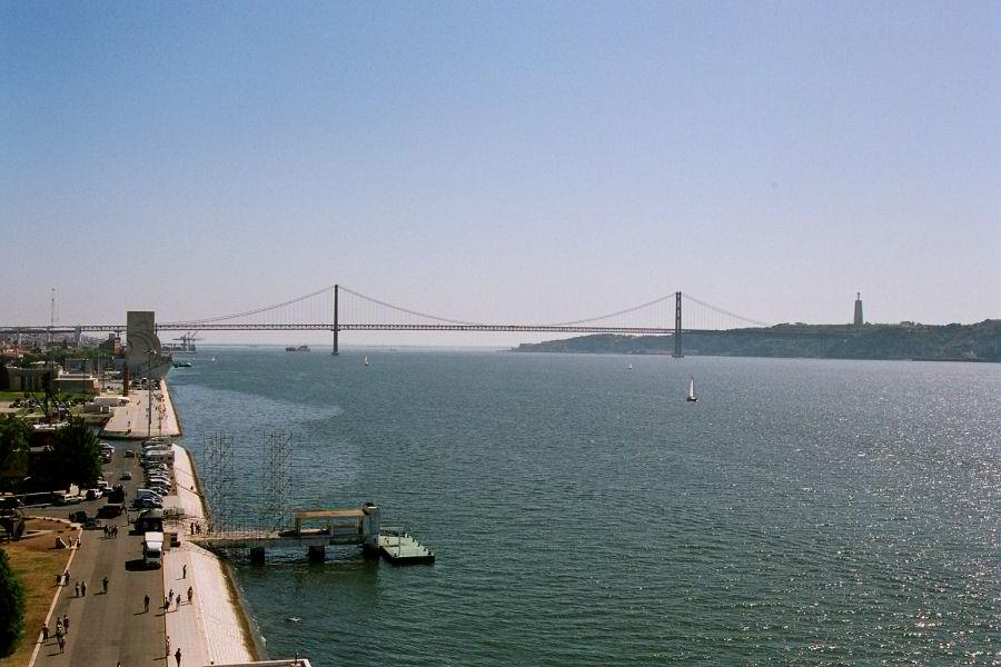 Kilátás Belemből a város felé, az "Április 25-e" híddal a Tejo-n.