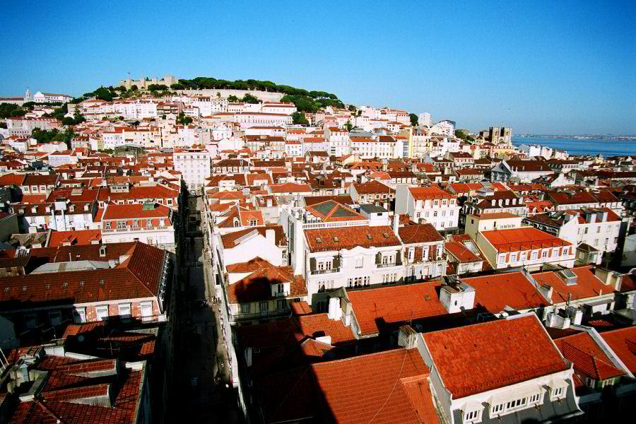 Lisszaboni háztetők Balra/középen a túloldalon a kastély, jobbra a "Sé" (188 KB) |