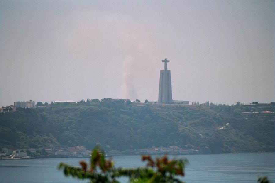 Kilátás a várból a Krisztus felé háttérben erdőtűzzel (65 KB) |