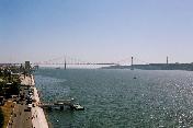 Kilátás Belemből a város felé, az "Április 25-e" híddal a Tejo-n.