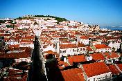 Lisszaboni háztetők Balra/középen a túloldalon a kastély, jobbra a "Sé" (188 KB) |