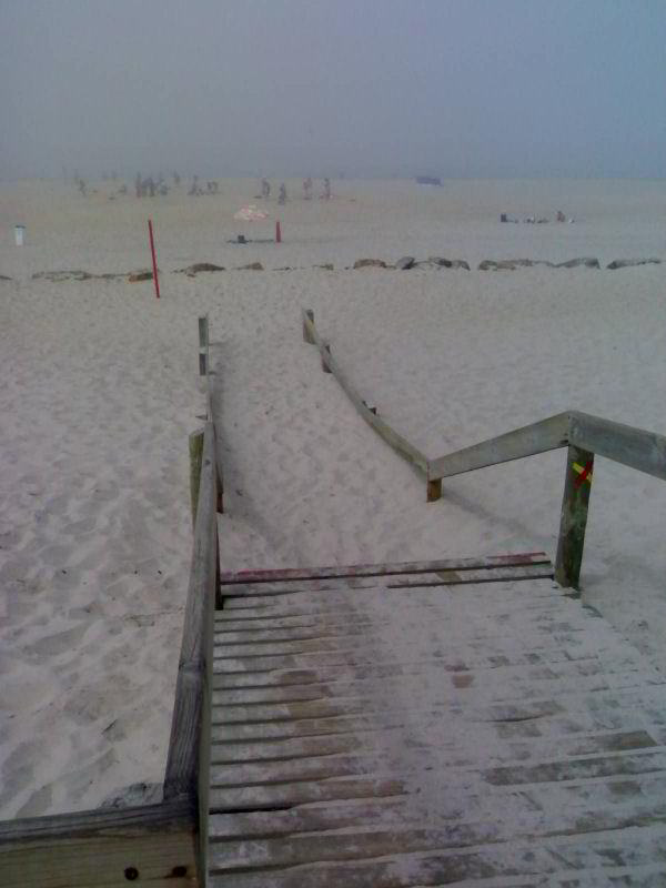 Kikurultunk a parta -- ami itt egy végtelennek tűnő homokpadot jelent --, Praia de Mira felé esteledett ránk. A ködöt eddigi utunk