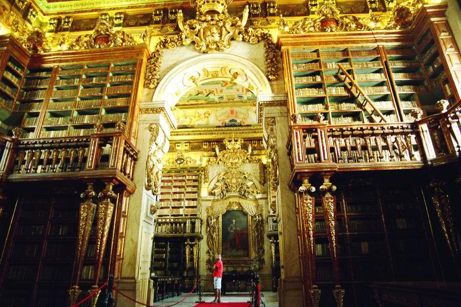 18. század elejéről (V. Joăo) származó könyvtárat is (ide valamiért csak adagokban, "időjeggyel" engedik be a látogatókat, de